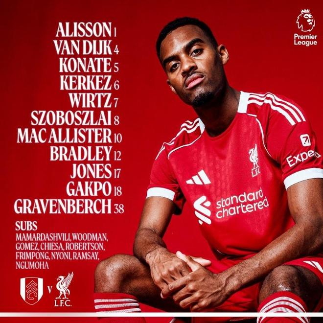 北京時間1月4日23:00,英超聯(lián)賽第20輪繼續(xù)進行,紅軍利物浦客場挑戰(zhàn)農(nóng)場主富勒姆。本場比賽在克拉文農(nóng)場球場進行,賽前雙方首發(fā)陣容陸續(xù)公布: